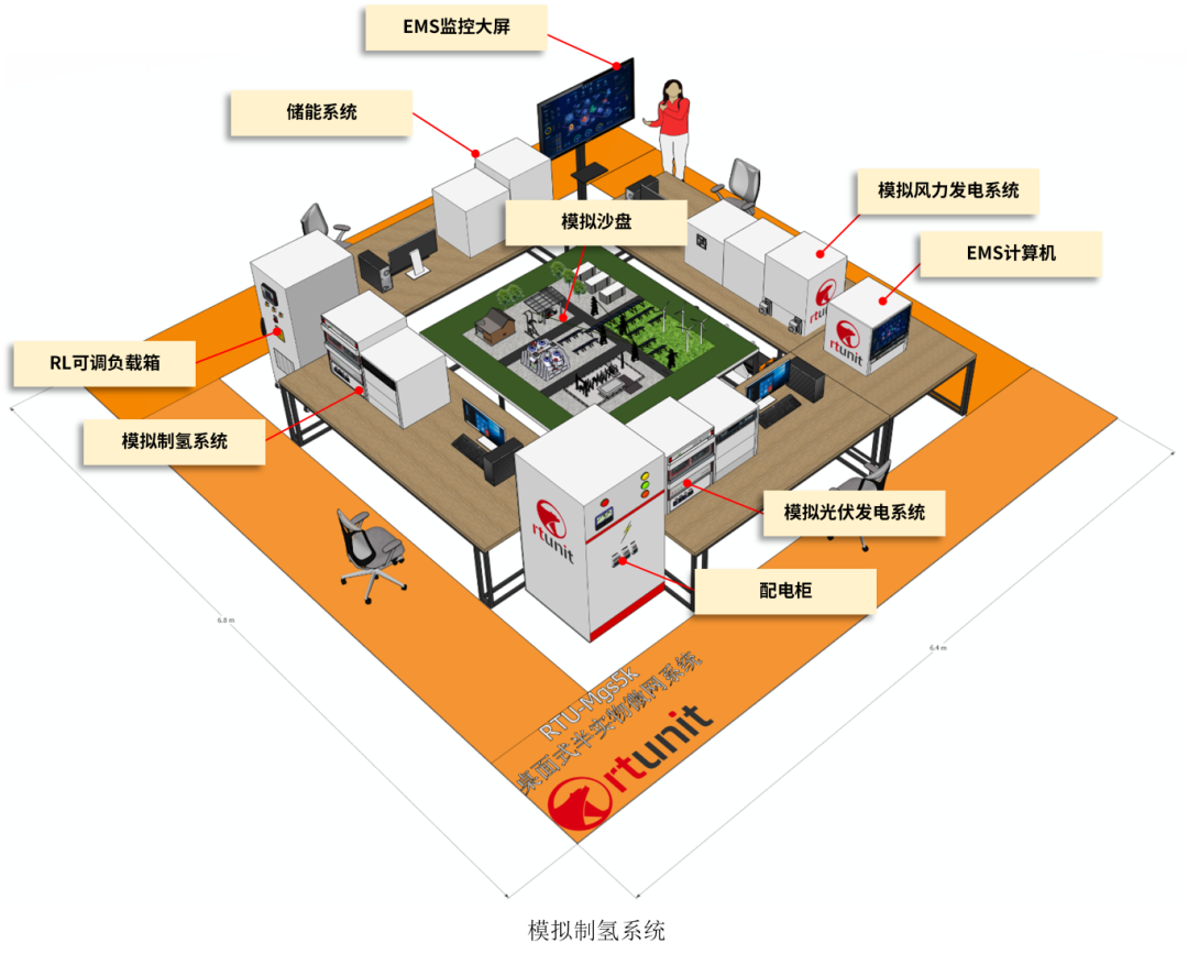 这款平台将完整的微电网系统浓缩于桌面之上,集成了配电系统、模拟光伏发电系统、模拟风力发电系统、储能系统、模拟制氢系统、充电桩系统、可编程负载及能量管理系统。其开放式架构支持师生自由组合发电与负载单元,通过精美的沙盘演示将复杂的能量流动过程可视化,使抽象理论变得触手可及。特别值得关注的是,每个子系统都配备了独立的快速控制原型控制器,支持MATLAB/Simulink图形化编程,让算法从仿真到实物的转换变得轻松快捷,极大提升了科研迭代效率。